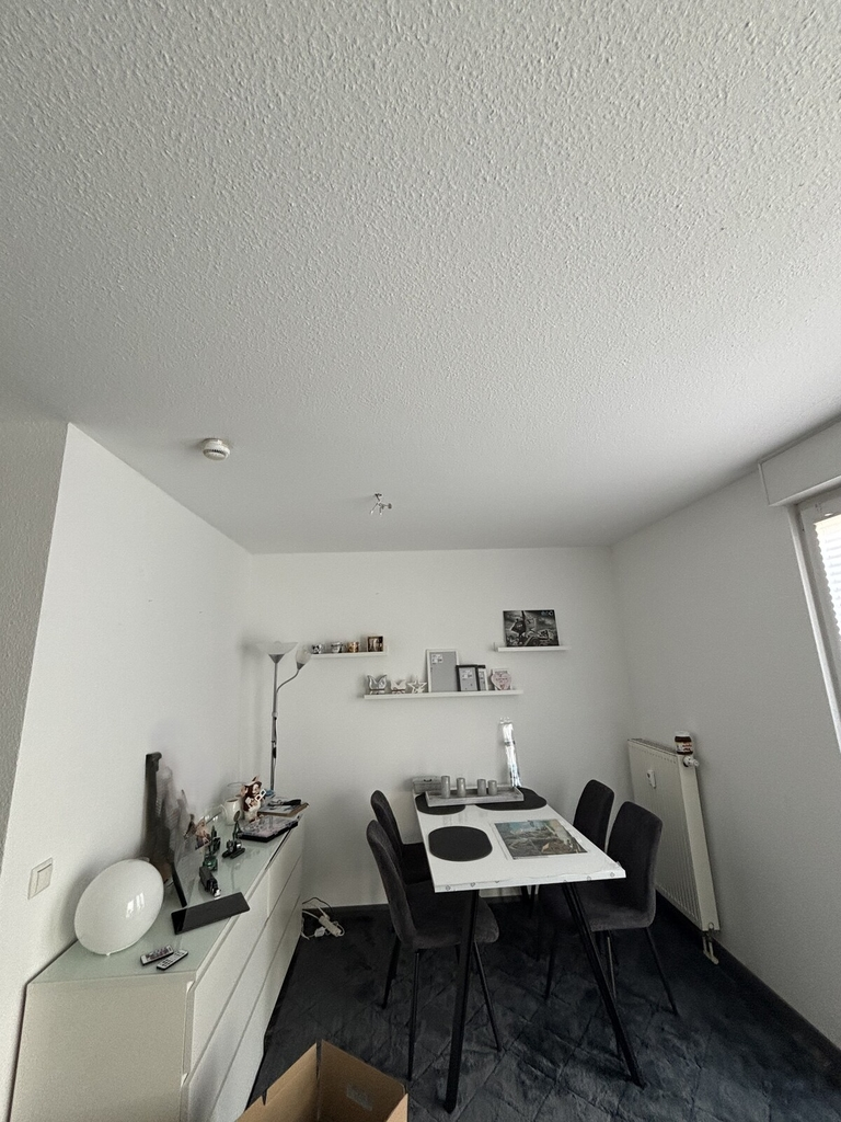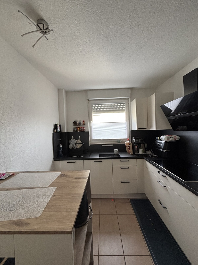 Küche und Diele mit Fliesenboden, Wohnräume mit Oberboden vom Vormieter, welcher bei Wunsch übernommen werden kann.