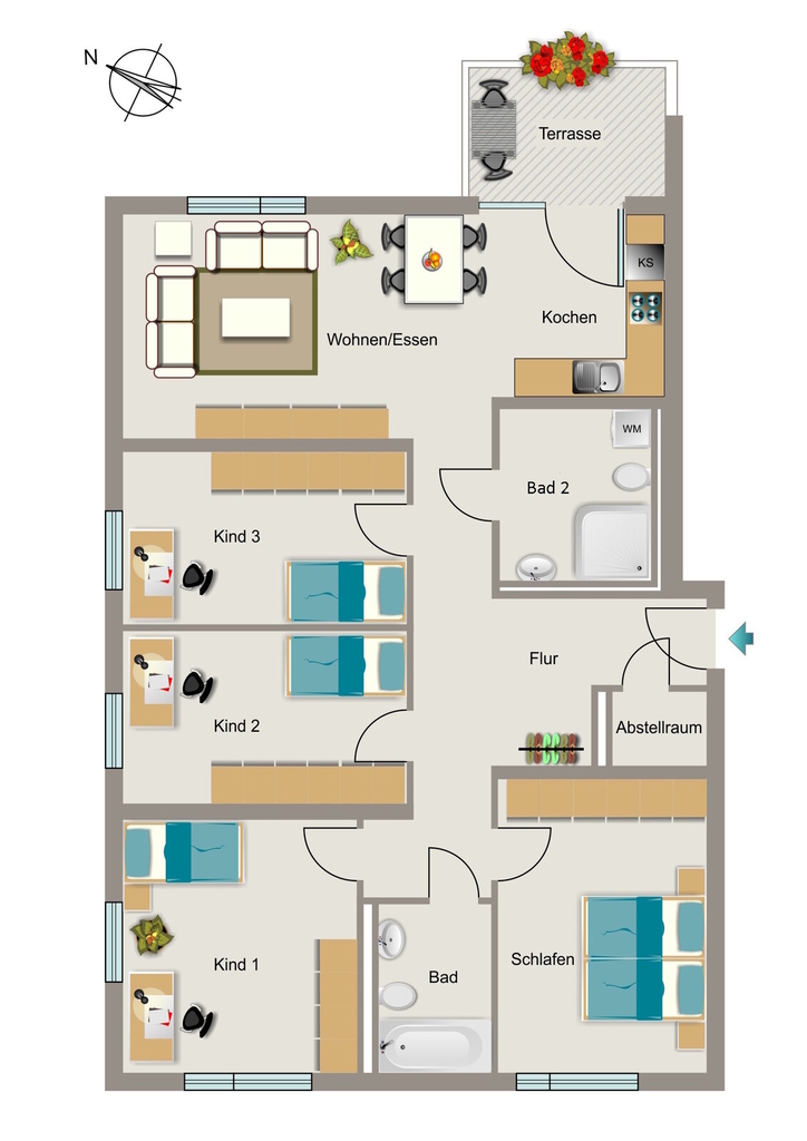 !Für die Anmietung ist zwingend ein Wohnberechtigungsschein (WBS) Typ B für 5 Personen notwendig!