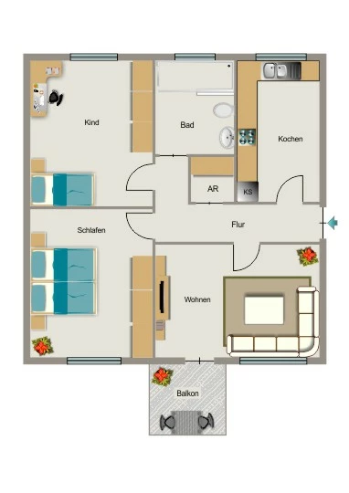 Die 3-Raum-Wohnung verfügt über: