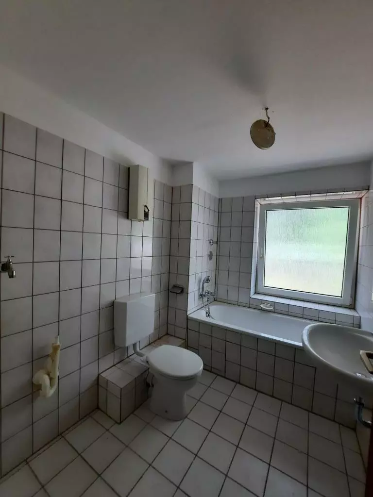 • Tageslichtbad mit Badewanne und Waschmaschinenanschluss.