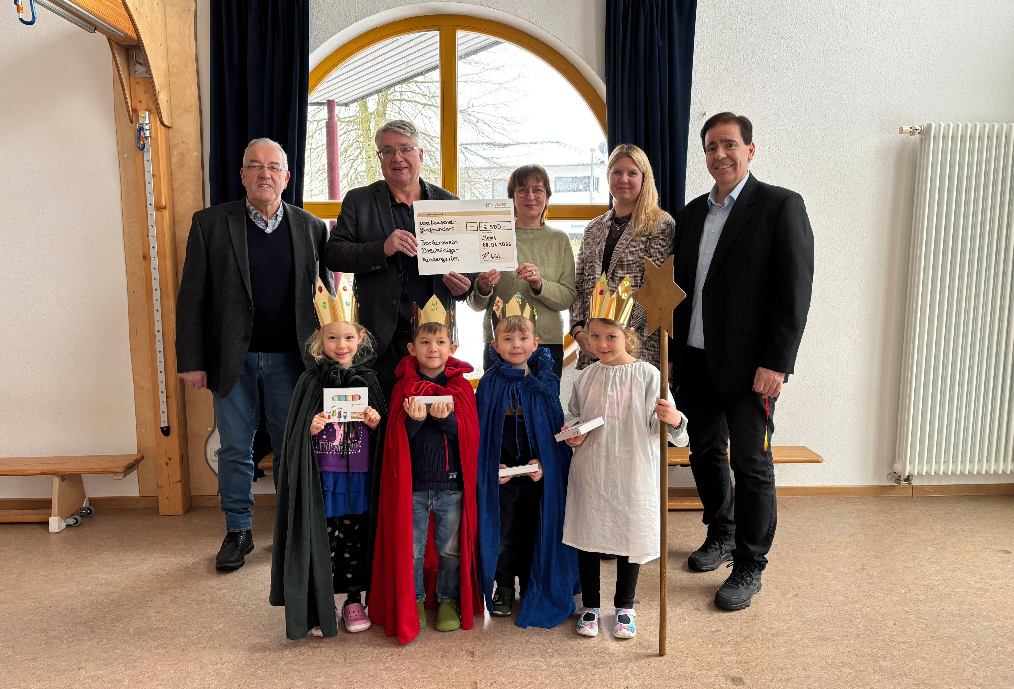 Annette Becker, Leiterin des Dreikönigskindergartens im Stadtteil Meerbeck, und Pfarrer Herbert Werth nahmen die Spende stellvertretend für die Einrichtung und den gleichnamigen Förderverein entgegen: „Mit unserem neuen und modernen Bewegungs- und Erlebnisgarten möchten wir den Kindern zusätzliche Sicherheit bieten und ihre Kreativität fördern. Dazu erneuern wir den Niedrigseilgarten sowie die Holzpferde und schaffen neue Spielhäuser an. Allein können wir das Projekt allerdings nicht stemmen. Umso mehr freue ich mich, dass uns – neben dem tollen Engagement unserer Eltern, des Fördervereins und des gesamten Teams – auch die Vivawest Stiftung unterstützt. Vielen Dank für die Spende, die uns unserem Ziel ein großes Stück näherbringt“, so Annette Becker.