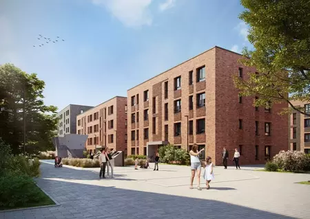 Auch im Norden der Stadt tut sich etwas – zum Beispiel in Coerde. Unter dem Motto „Coerde – Ein Stadtteil in Bewegung“ hat der Rat der Stadt Münster ein Entwicklungskonzept zur Steigerung der Wohn- und Lebensqualität beschlossen. VIVAWEST ist natürlich ganz vorne mit dabei: mit dem neuen Zentrum-Nord zwischen Coerde und Kinderhaus. Dort verteilen sich insgesamt 282 attraktive Mietwohnungen auf mehrere 4- bis 8-geschossige Gebäude. Und das nur etwas über einen Kilometer Luftlinie von der Innenstadt!